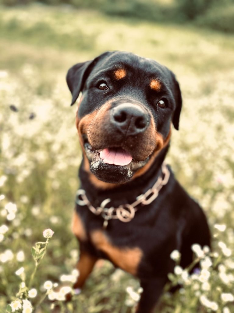 Rottis sind bekannt für ihre Ruhe, Nervenstärke und Ausgeglichenheit. Was sie besonders macht ist ihre tiefe Bindungsfähigkeit.